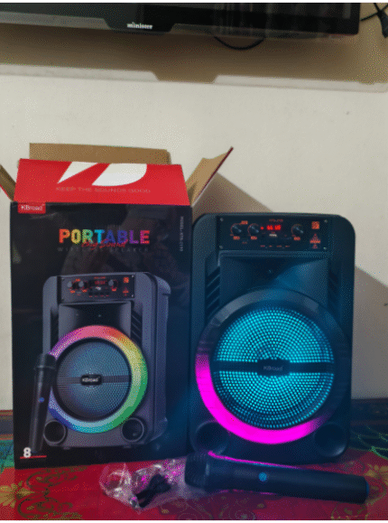 KTS-2199 8-ইঞ্চি Portable Bluetooth Speaker with Wireless Microphone। শক্তিশালী সাউন্ড, গভীর বেস, USB/TF/FM সাপোর্টসহ ইনডোর ও আউটডোর পার্টির জন্য আদর্শ।