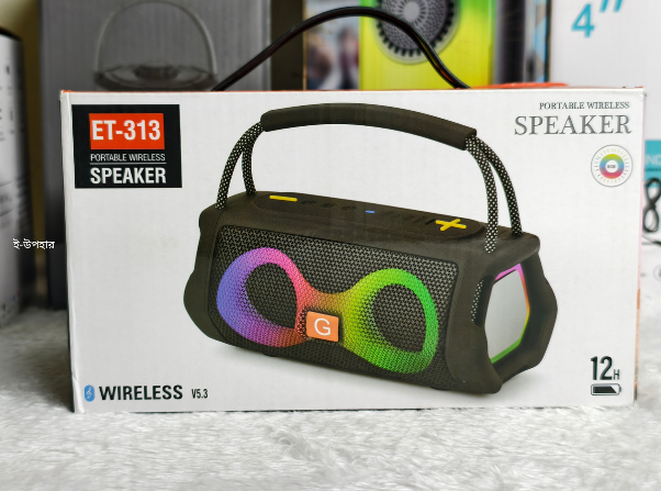 Product details of ET-313 Bluetooth, AUX, USB, TF Card & FM Radio Supported Hi-Fi Sound Colorful Lighting Party Bass Speaker With FM Radio